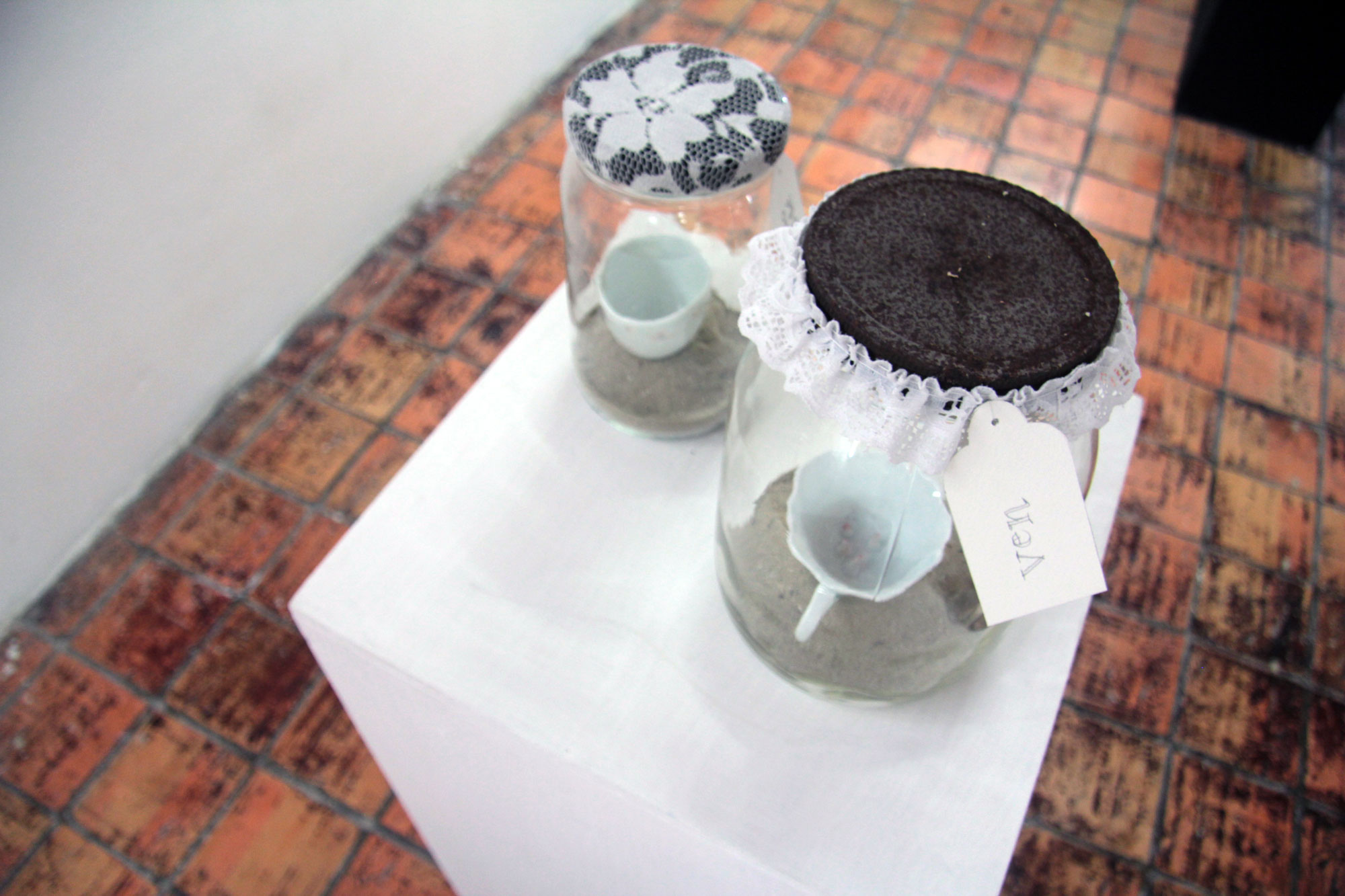Frente a estas piezas estarán las cerámicas. En este particular, si me gustaría hacer un montaje diferente, sería partidaria de instalar las cerámicas sobre una especie de mesa, con mantel incluido, buscar la referencia artesanal –un poco tradicional si se quiere, pero no exactamente– en las texturas, en el color del mantel, en el diseño de la mesa, pero sin quitarle protagonismo a la cerámica, que colocaríamos juntas, como una mesa servida, lista para ser consumida. Pero allí no habrá una vajilla inocente, especialmente si se piensa en las cucharas y esa que tiene espinas. ¿Cómo se come está historia? Incluso llevando un mapa resultan difíciles algunos parajes del camino, no siempre una mesa servida es sinónimo de servilismo, el espectador se va a detener y tendrá que pensar en los usos de los objetos que estará observando, desde la cuchara hasta la mujer, es una estación fuerte y el enlace perfecto para la próxima zona.